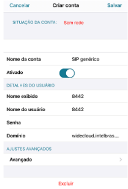 4 - Insira os dados do seu ramal Wide Cloud conforme exemplo abaixo: