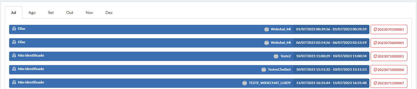 Escopo: Consegue buscar todas as conversas ou as iniciadas ou as finalizadas dentro do período que foi definido;