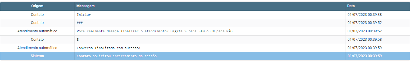 Mensagem: Conteúdo da mensagem, aonde visualizamos o motivo do atendimento ter sido considerado perdido.