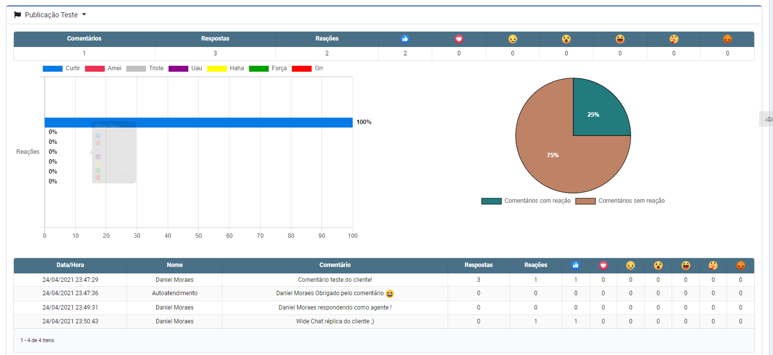 O relatório de análise do Facebook Comments, é aonde podemos ver os atendimentos do canal que trata os comentários feitos nas postagens do Facebook.