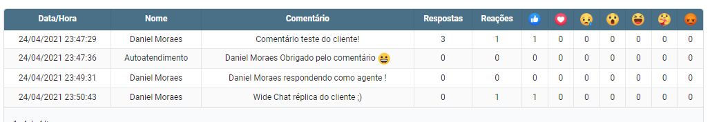 Data/Hora: Data e hora que foi publicado o comentário/resposta;