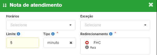 - Marcando a posição de processamento do atendimento "FHC = Fora do horário comercial"