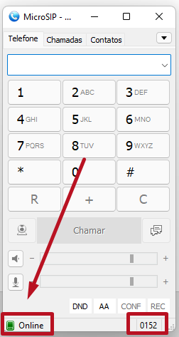 6. Após salvar, verifique se seu ramal está registrado corretamente através do status e ele estará pronto para realizar chamadas: