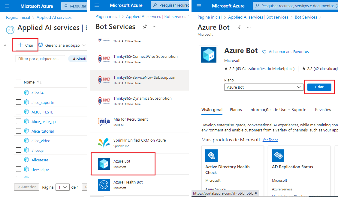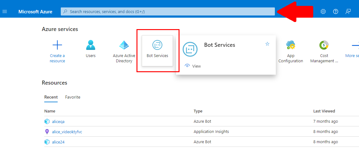 - Localize o bot services, caso não esteja de fácil acesso na tela inicial utilize o campo de busca.