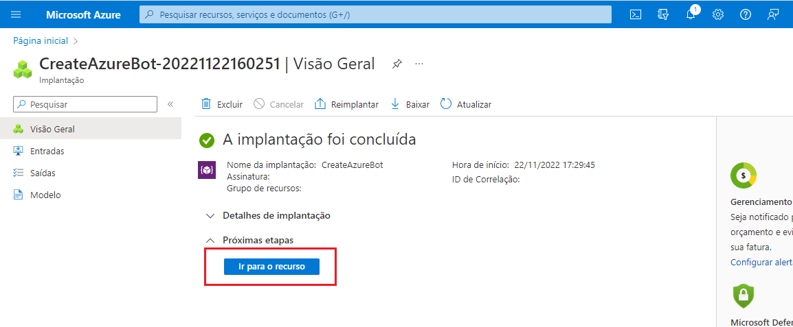 - Adicione o grupo de recursos da sua preferência. Caso ainda não tenha um grupo, basta clicar em "criar novo";