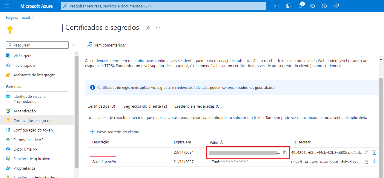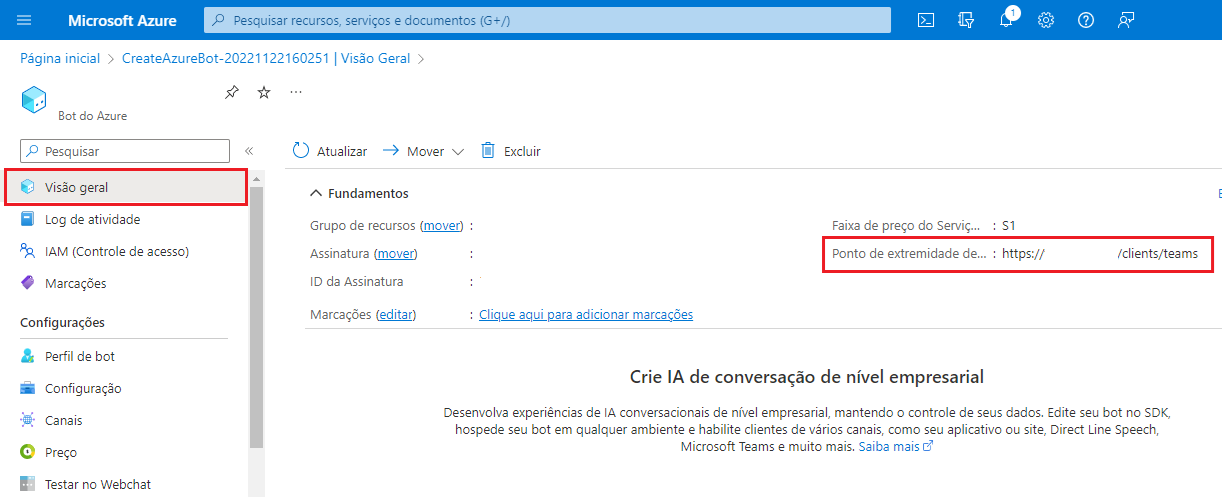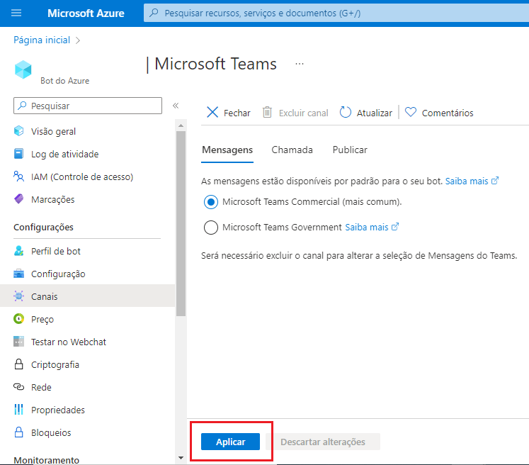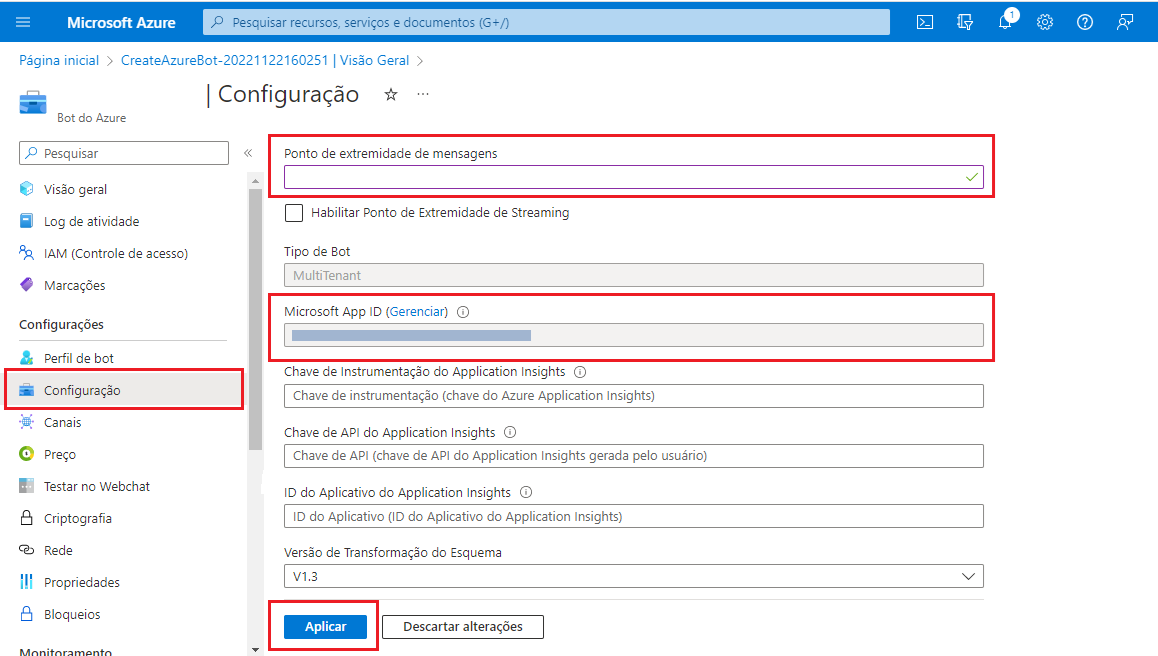 - Copie o Microsoft App ID, essa é uma das informações necessárias para configurar o canal;