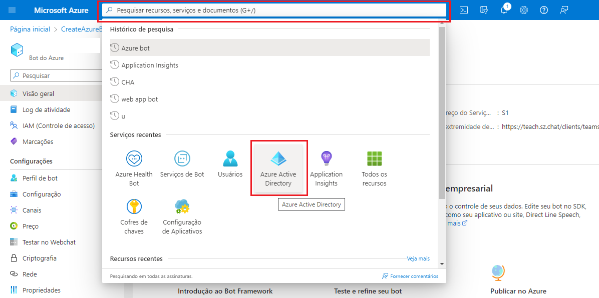 - Utilize o campo de busca para navegar até o Azure Active Directory.