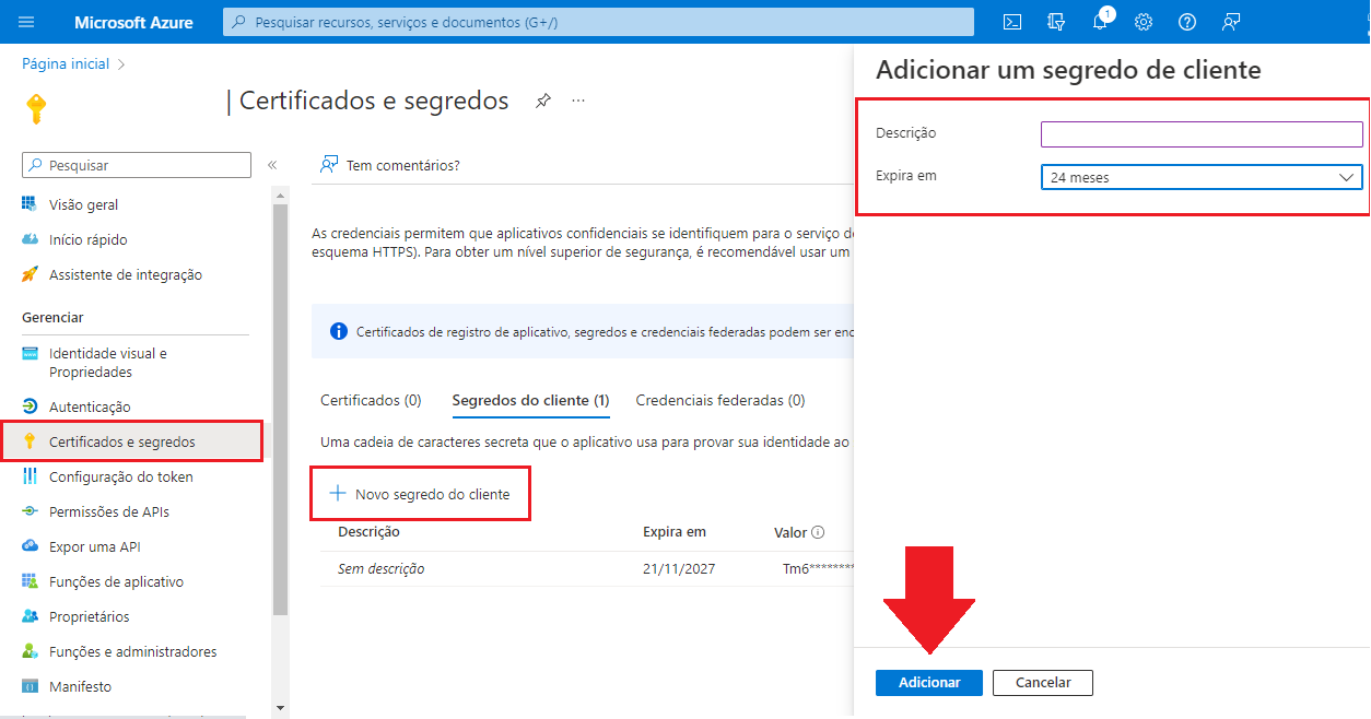 - Adicione a descrição da sua preferência e informe em quando tempo a senha irá expirar.