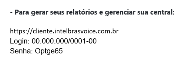 Antes de iniciarmos, é importante que tenha em mãos os dados de autenticação do seu supervisor que foram encaminhados ao seu e-mail. Este dados são únicos e personalizados para cada cliente e se parecem com estes que vamos usar de exemplo: