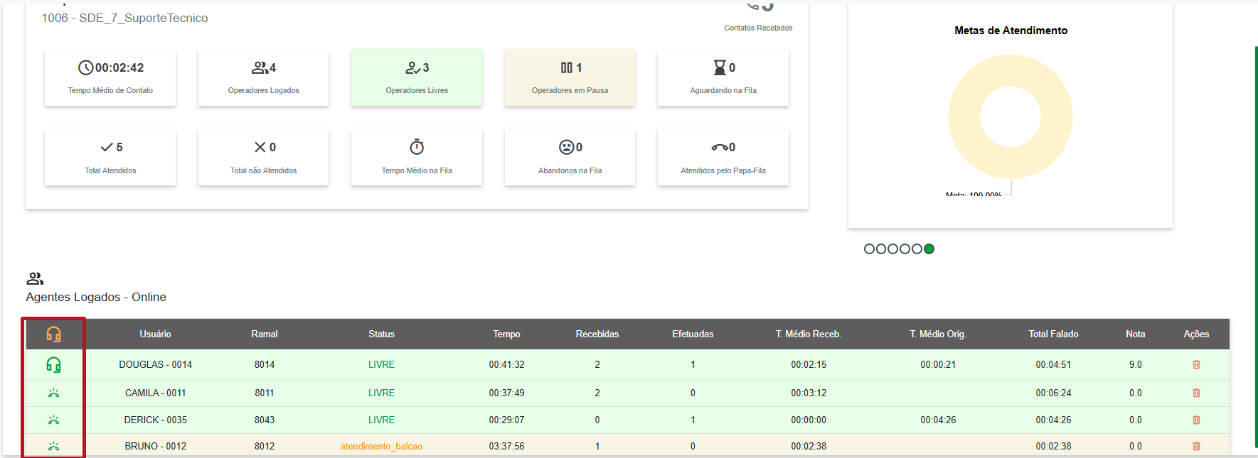 5. Ao clicar em cima do ícone de telefone ele passará a ser um Headset e indicará que este operador não está apto a receber chamadas do Discador Automático. Para saber mais sobre o Discador, clique aqui.