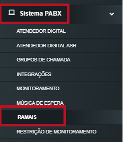 2. Acesse o menu "Sistema PABX" -> "Ramais".