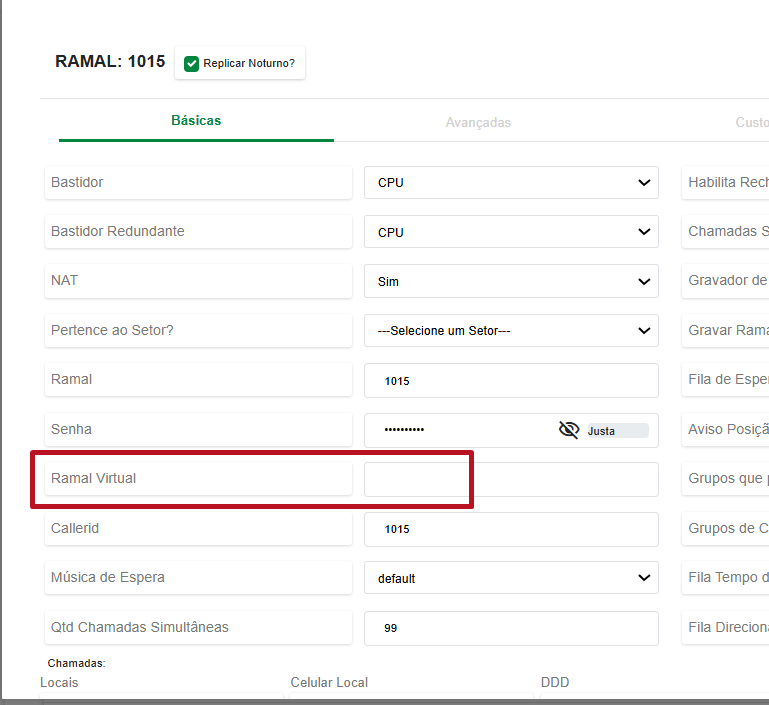 -Os ramais virtuais não podem conter a mesma numeração dos ramais que já estavam na central no momento do acesso (ramal real).