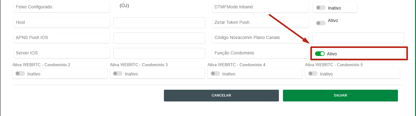 3. Em seguida, acesse o menu "Avançadas", role a página para baixo, habilite "Função Condomínio", salve e aplique a configuração.