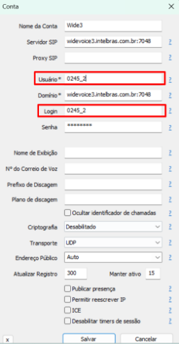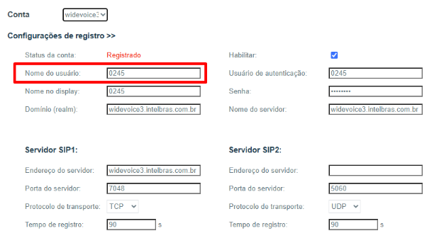 4. Para realizar o registro dos ramais com a "Função Condomínio" habilitada em mais de um aparelho, deve-se configurar o primeiro equipamento normalmente, o segundo com _2 após o número do ramal e assim por diante conforme exemplo abaixo: