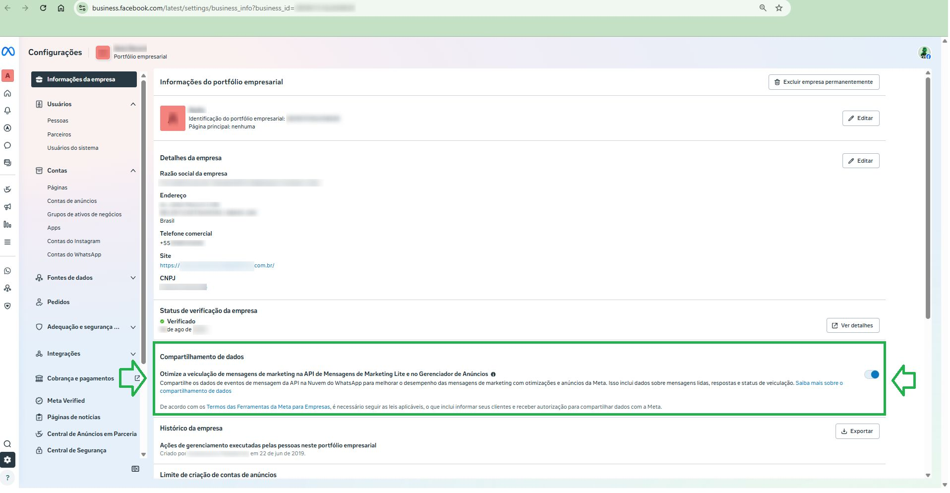 Abaixo o exemplo de onde habilitar, dentro das informações da Empresa, dentro do gerenciador de negócios: