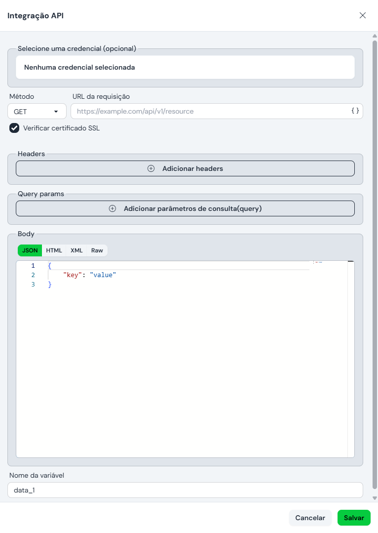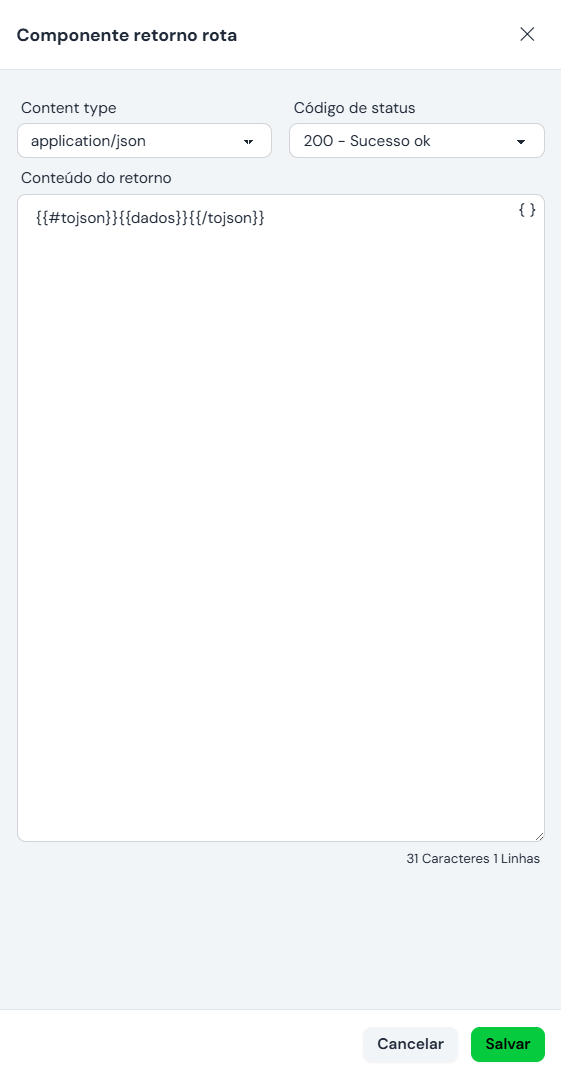 Corpo da Resposta: texto fixo ou Mustache dinâmico
